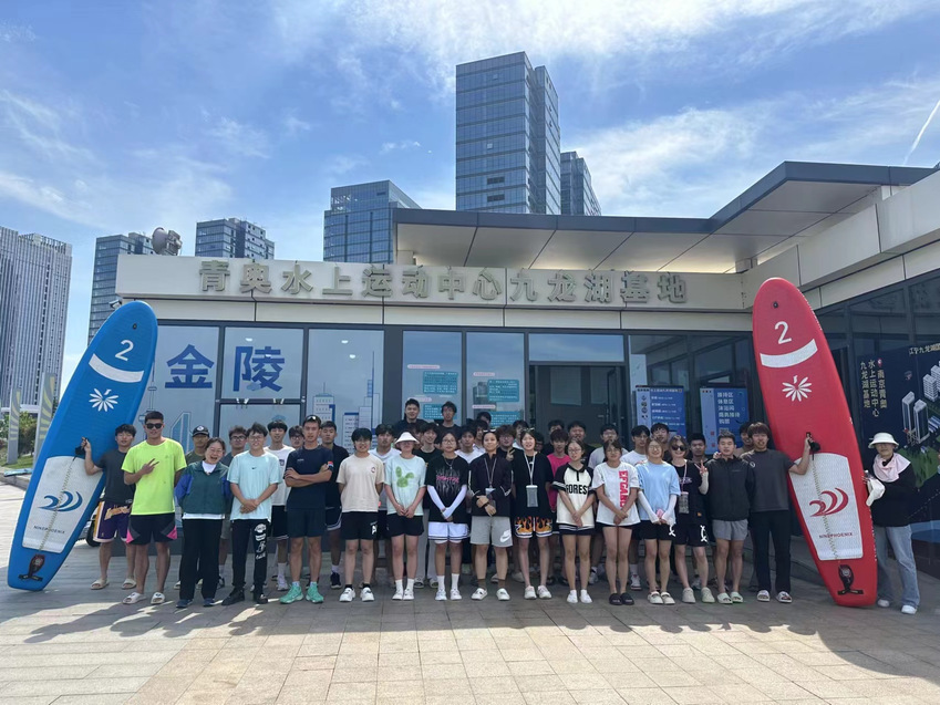 2024年5月29日,休闲体育系23级110231、110232班全体学生在我院胡娟、朱金宁两位老师的带领下赴青奥水上运动中心九龙湖基地开展了一次别开生面的桨板运动初体验活动。这次校外实践教学不仅为学生提供了户外运动机会,还让他们深入了解和体验了桨板运动的魅力。