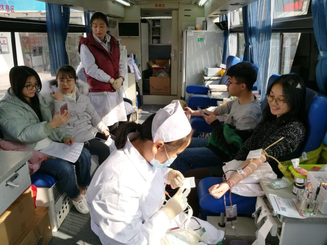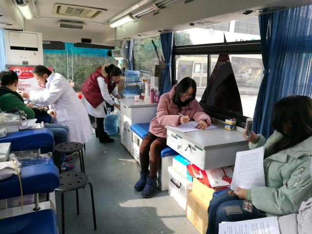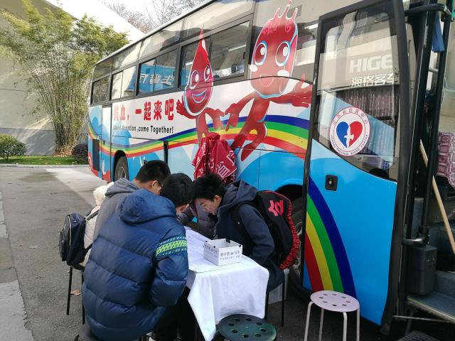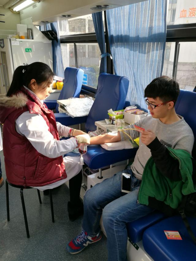 12月27日,南京市血液中心的无偿献血车开进了校园。尽管天气寒冷,但献血车被同学们的爱心、热情塞得满满的暖暖的。大家了解相关知识,填写申请表格,常规抽血检查,献血,休息,既争先恐后又秩序井然,以实际行动诠释了“人道、博爱、奉献”的红十字精神。截止2016年6月6日,我院师生近五年无偿献血达836人次,累计献血量达241600ml。