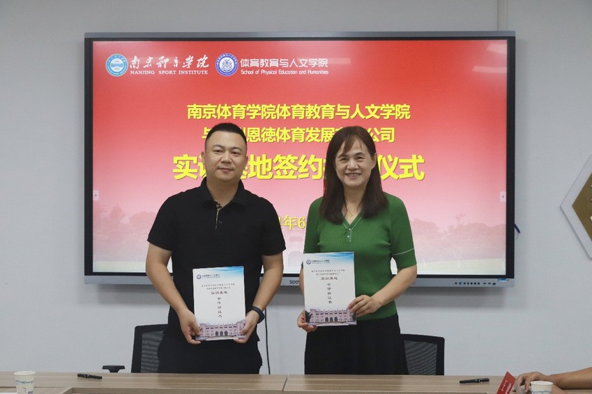 6月7日上午,36365最新线路检测中心体育教育与人文学院与常州恩德体育发展有限公司举行实训基地签约授牌仪式。教务处处长王凯,体育教育与人文学院院长沈鹤军,党总支副书记喻菊,副院长康晓磊,体育教育系主任霍军,副主任王建,常州恩德体育发展有限公司总经理丁一晟,运营总监王艺锜,人事经理袁力,财务经理苏轩等参加仪式。仪式由霍军主持。