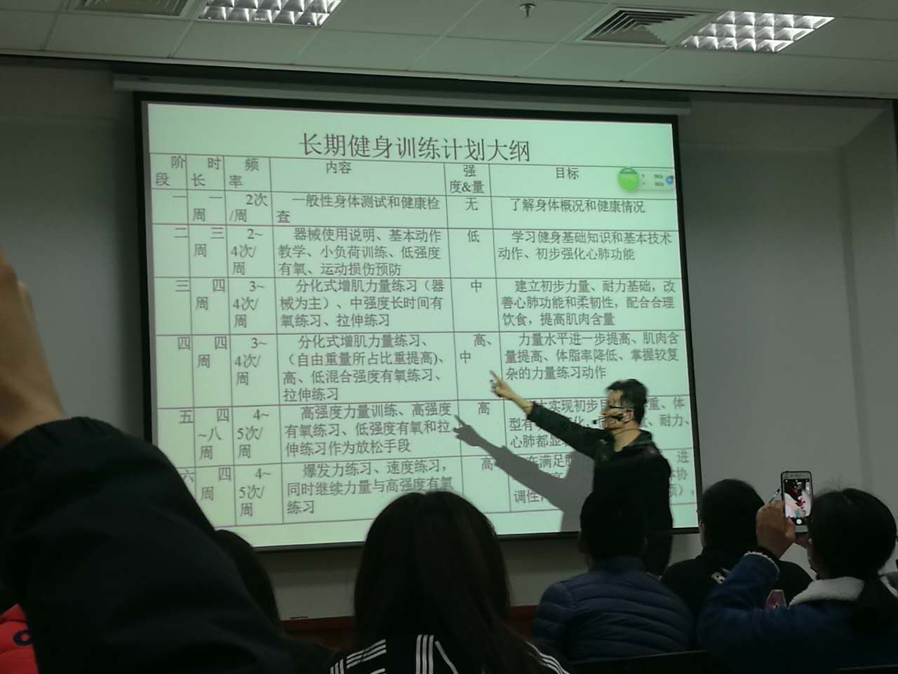 这一周我们请到的是北京体育大学体能训练博士生导师——王卫星教授,他为我们带来了为期一周的专项体能训练课。来自北京体育大学的王卫星教授长期为各个国家队提供体能训练,具有雄厚的专业知识和丰富的实践经验,他的到来吸引了许多学生和老师前来旁听。