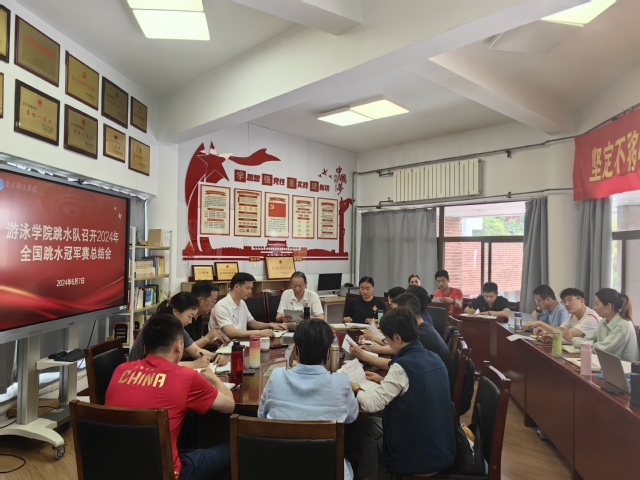 6月7日上午,游泳学院跳水队在跳水花游馆会议室召开2024年全国跳水冠军赛赛后总结会。训练处副处长叶蓁、校训练与管理督导组专家任大新、袁紫娟、靳鲁芳、张继芳出席会议。游泳学院党总支书记骆晓娟、跳水队管理干部和全体教练员参加会议。本次会议由游泳学院院长王伟新主持。