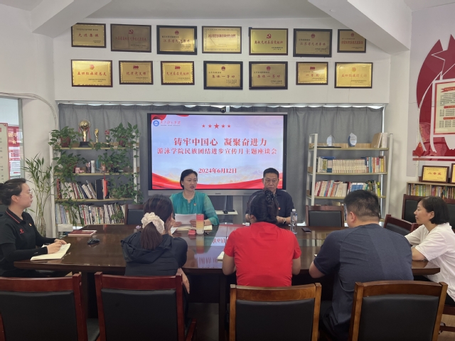 为深入学习贯彻党的二十大精神,深化民族团结进步教育,铸牢中华民族共同体意识,根据校党委统战部《关于开展民族团结进步宣传月活动的通知》要求,6月12日上午,游泳学院党总支在跳水花游馆二楼会议室召开“铸牢中国心 凝聚奋进力”主题座谈会。游泳学院党总支书记骆晓娟主持会议,项目队副领队及少数民族教练员、运动员、党外人士教练员代表参加座谈会。