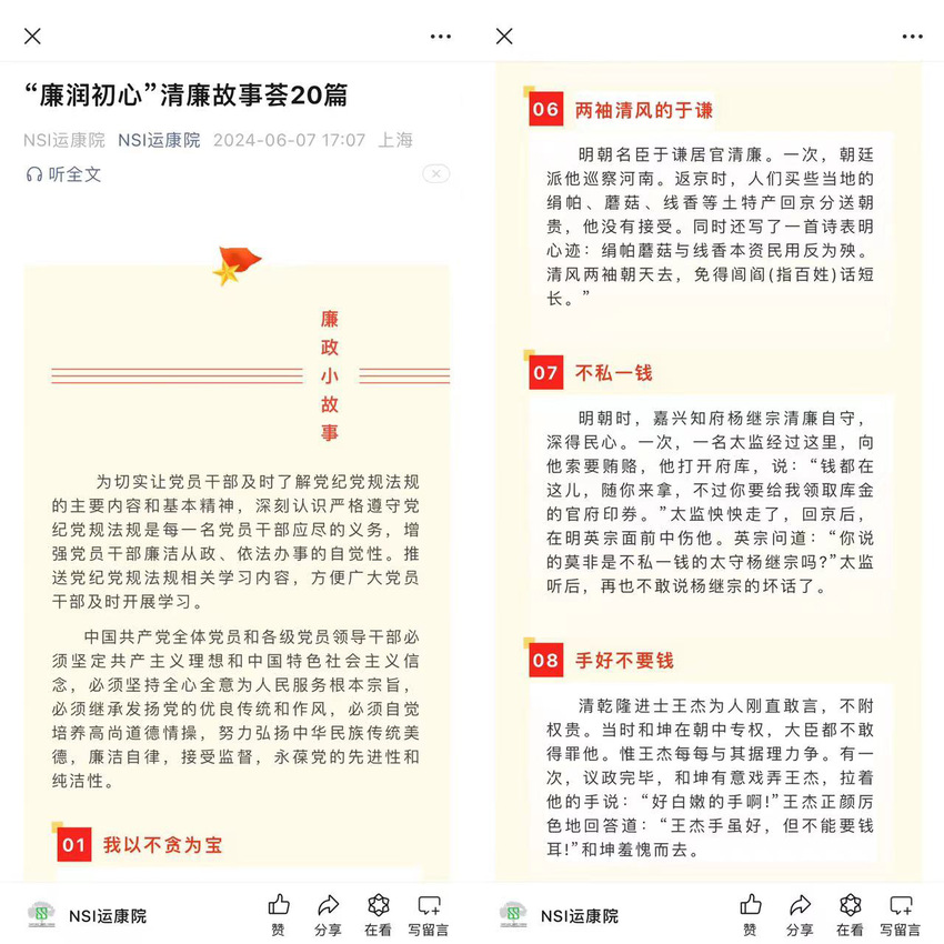 为了让党课焕发新生机,激发新活力,推动形成“廉洁故事我来讲”的生动局面,运动健康学院各支部书记用饱满的精神状态,朴实的话语、真挚的感情,声情并茂地讲述了等领袖、名人一个个感人至深的廉洁小故事,全体党员结合故事畅谈自己的感受,引人入胜、发人深省,传递出满满的正能量,形成了浓厚的学习氛围。同时学院利用公众号推广清廉故事,营造浓郁的廉洁文化氛围。