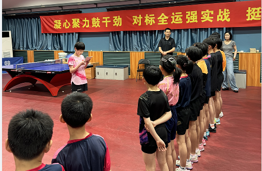 最后,徐炳生号召全队在夏训中要持续深入开展向张雨霏学习的活动,在即将到来的夏训中不畏困难,顽强拼搏,战高温,斗酷暑,你追我赶,携手共进,用实际行动向张雨霏看齐,争取早日涌现新的全运会冠军、世界冠军、奥运冠军,谱写江苏乒乓球队新的历史。