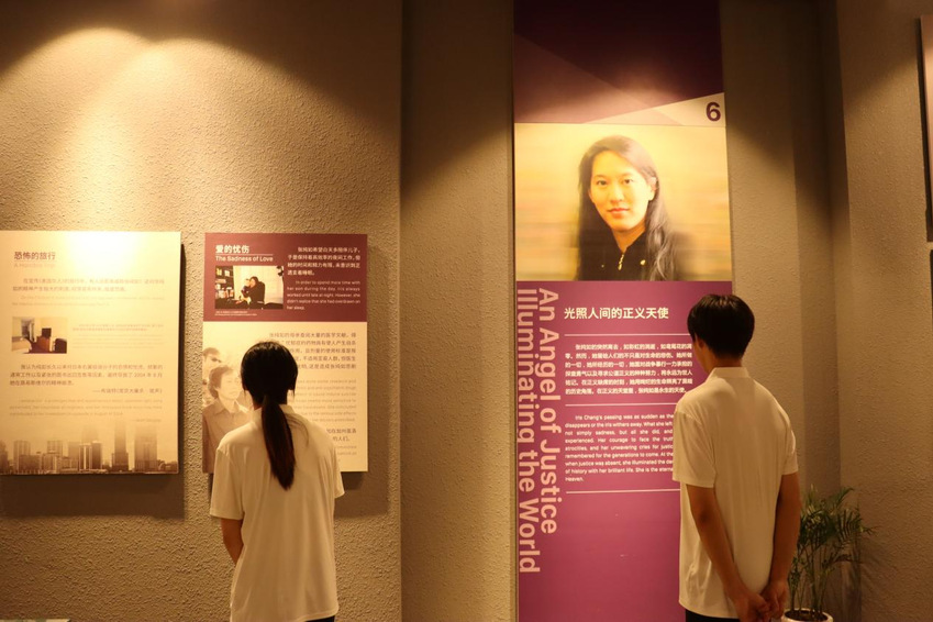 场馆以“不能忘却的纪念”为主题,分为“大洋彼岸的父母之邦、海外赤子的中国情结、直面真相的《南京大屠杀》、激情燃烧的历史捍卫者、不能停止的求索之旅、光照人间的正义天使”六合板块。张纯如一心追求公正,以芊芊细笔,用毕生精力向全世界揭示鲜为人知的中国历史,还原历史真相。一段段文字、一张张照片、一帧帧视频,无不在诉说着那段惨绝人寰、浸满血泪的屠杀史,更是在展示张纯如用生命撕破侵略者丑恶面纱的事迹。团队全体成员驻足凝眸、用心感悟,被张纯如正直、执着,追求真相、捍卫正义的崇高精神所感动,为这位重塑民族尊严的勇敢女性而感到深深的震撼和敬佩。