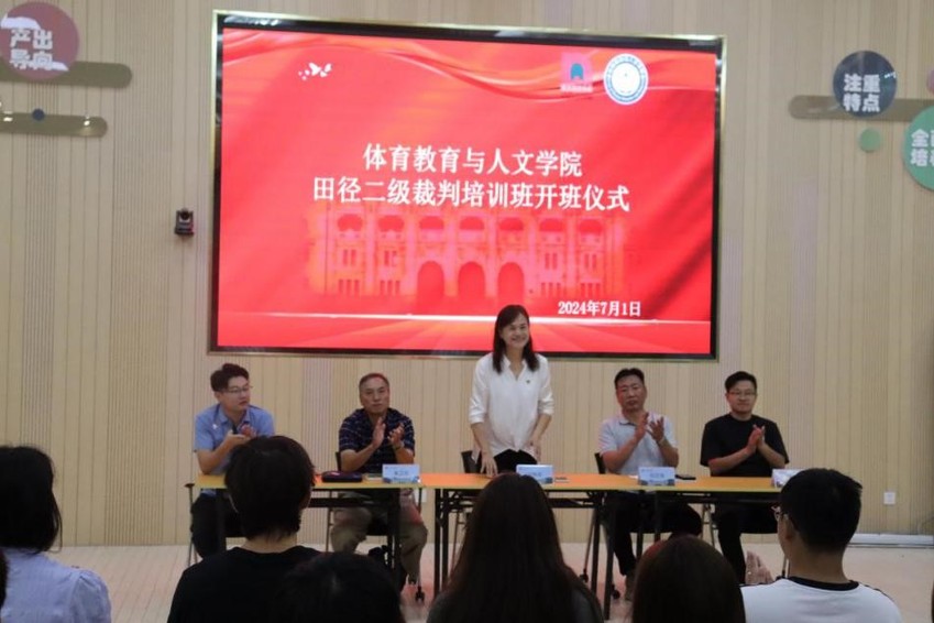 为进一步锤炼学员们的专业技能、深刻传承弘扬体育精神与专业素养,体育教育与人文学院于今年7月成功举行田径二级裁判培训活动。7月1日,活动正式拉开帷幕。体育教育与人文学院院长沈鹤军、国际级裁判朱卫东、南京市田径运动协会秘书长刘汉梁、副会长李新立出席本次会议并由田浩老师主持本次仪式。