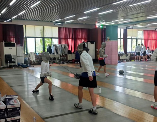 沈朝阳首先对到访的桃园市击剑队表示热烈欢迎,并介绍了我院击剑队的历史和基本情况。他表示这是一次宝贵的学习与提升机会,希望双方就击剑技术、训练方法和实战经验等展开深入交流。并通过训练理念、思路和实战演练经验等的分享,促进两岸在击剑技战术上互促共进,共谋两岸击剑运动发展。同时通过此次交流,也提升了两岸击剑界对彼此的认同和了解。