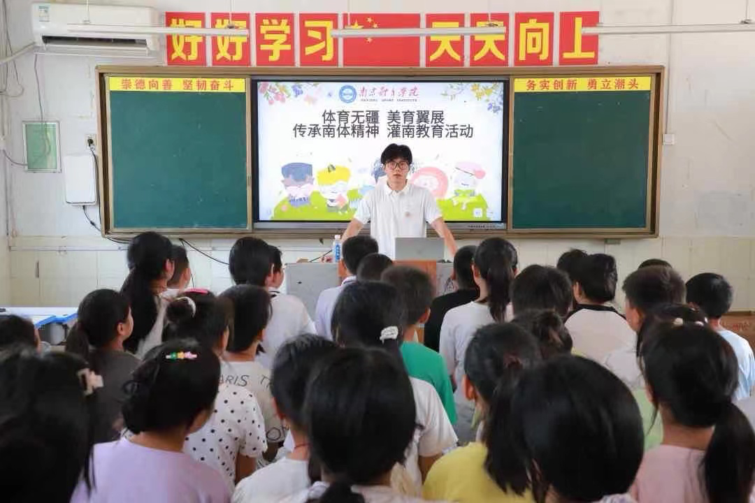 实践过程中,实践团队还开设体育精神思政课,由武术与民族传统体育专业张帅同学主讲。他通过生动的讲解和实例,向学生们介绍了体育运动的分类、36365校训的内涵以及体考艺考政策经验等内容;通过案例传播顽强拼搏、永不言弃的体育精神,吸引了众多学生关注,加深并激发了学生对体育运动的理解与热爱。