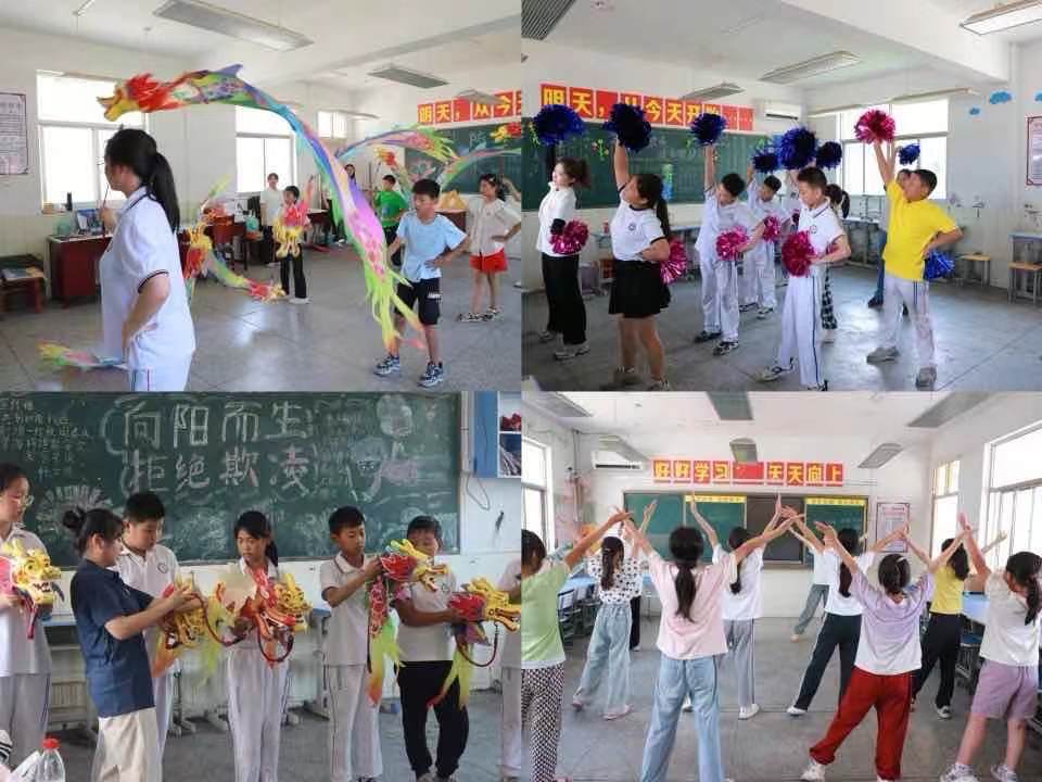 活动汇报阶段,实践团队携手三口小学的学生们,共同呈现了一场以红色文化为底蕴的汇报演出。这场演出中,三口小学学生充分展示了在实践过程中习得的多样才艺,包括动感十足的拉丁舞、绚丽多彩的彩带龙表演,以及刚劲有力的武术展示等。这些精彩纷呈的节目,不仅是对全体学生辛勤付出与不懈努力的肯定,更是体育精神与美育教育深度融合的生动体现,彰显了学生们全面发展的良好风貌。