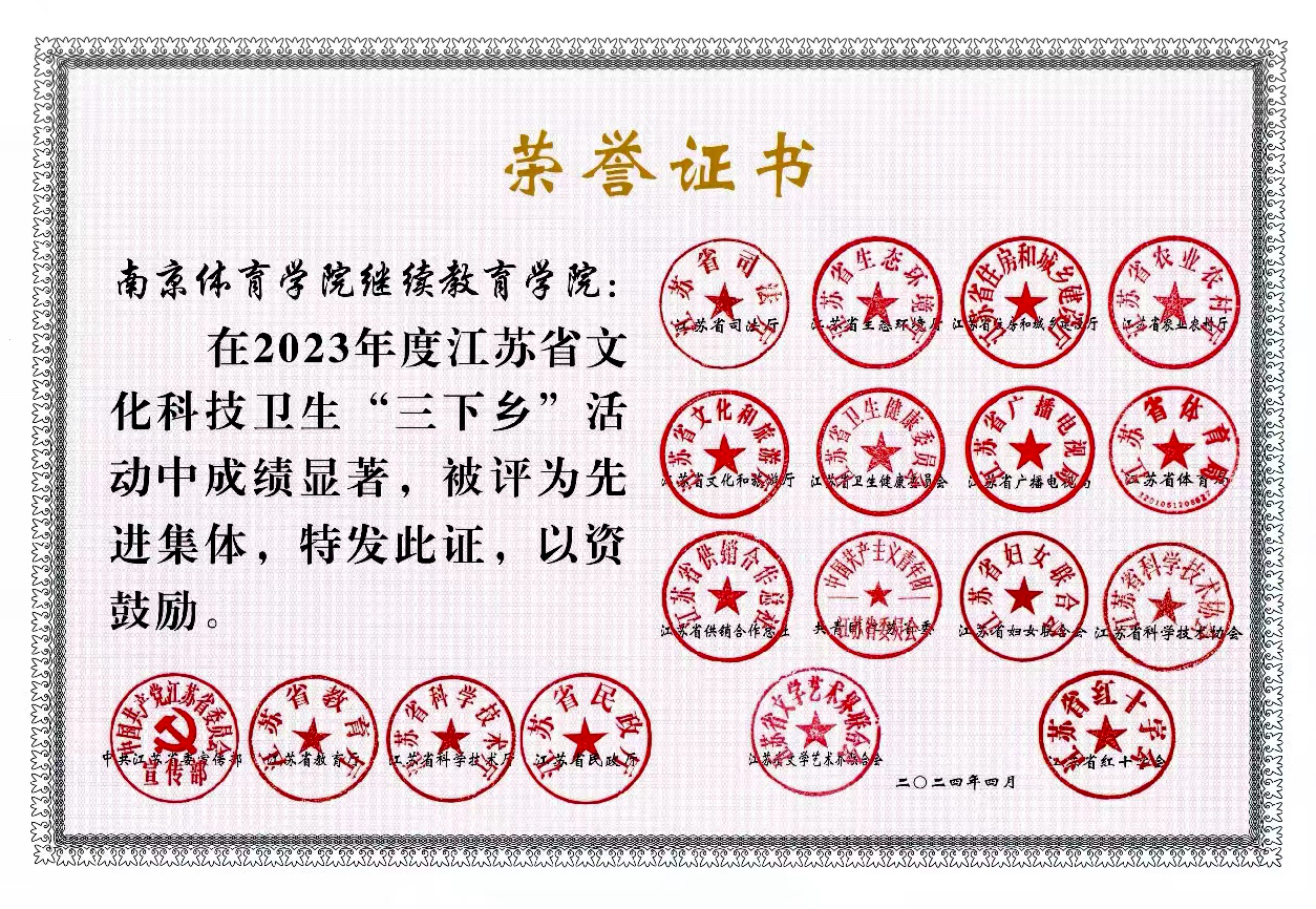 近日,省委宣传部发文(苏宣通〔2024〕18号)表扬 2023年江苏省文化科技卫生“三下乡”先进集体、先进个人,36365继续教育学院作为先进集体受到表彰。
