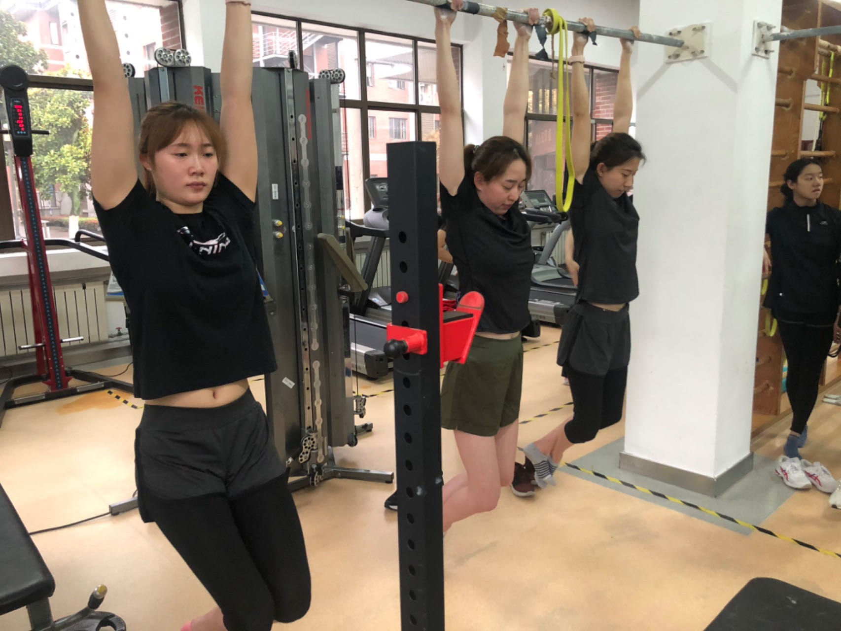 顾忠科老师对王赐月进行肌肉形态拍照用于对比训练效果
