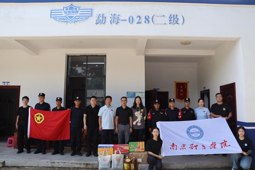 在打洛镇抵边联防所,运动健康学院院长汤强、校团委书记陆春龙、游泳学院党总支书记骆晓娟、运动健康学院党总支副书记阚妮妮带领团队成员实地了解卫国戍边青年的工作情况,与卫国戍边青年亲切交流,分享各自的奋斗故事与不屈精神。陆春龙和骆晓娟两位奥运冠军以自身的奋斗历程为引,与戍边青年讲述了关于梦想、坚持与奉献的故事,鼓励他们在艰苦的环境中不忘初心,牢记使命,激励他们继续发扬“特别能吃苦、特别能战斗、特别能奉献”的优良传统。随后,大家一同踏上边关之路,用脚步丈量祖国的边疆,深刻体会戍边青年的艰辛与荣耀。