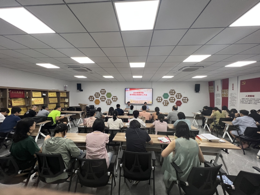 为全面做好新学期开学工作,确保学院各项工作的顺利开展,8月30日运动健康学院在教学办公楼220会议室召开新学期全体教职工大会。会议由党总支副书记阚妮妮主持。