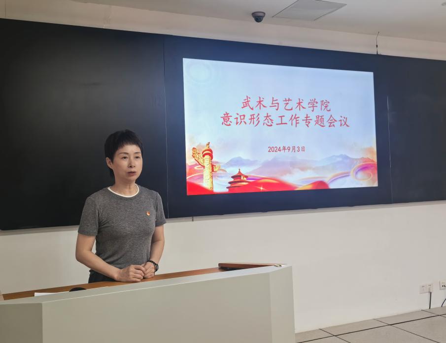 为进一步压紧压实意识形态工作责任,督促武术与艺术学院全体教职工在本职岗位上履责尽职,全面做好新学期开学工作,时刻拧紧意识形态总开关,确保各项工作顺利推进,9月3日下午,武术与艺术学院组织召开意识形态工作专题会议。会议由党总支书记叶瑛主持,全体教职工参加。