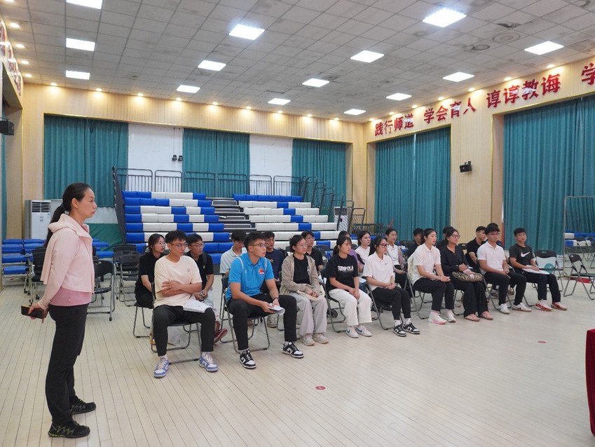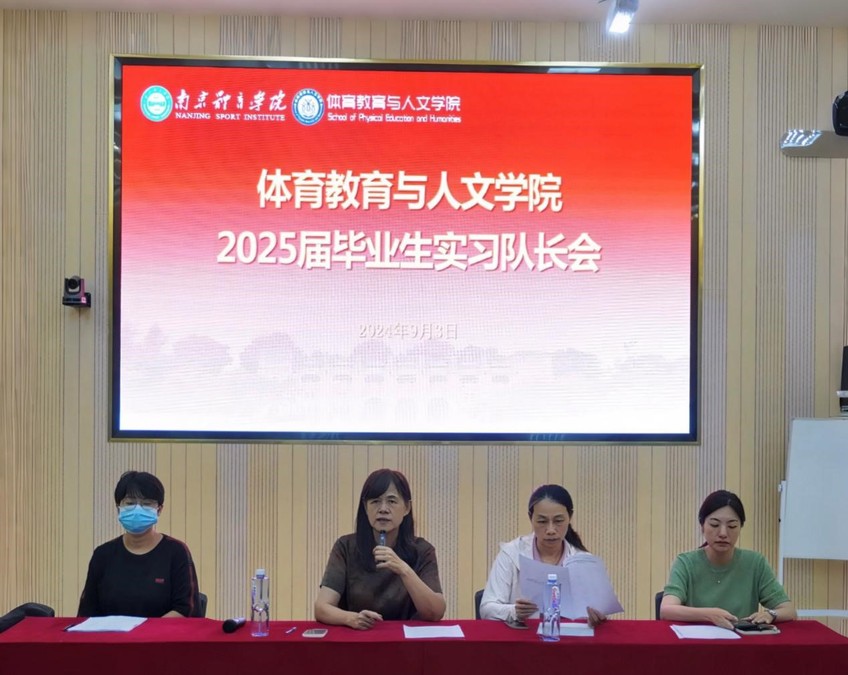 2024年9月3号下午,体育教育与人文学院在东阶召开2025届毕业生实习队长会。学院院长沈鹤军、副院长康晓磊出席会议,教学秘书谢明慧、2025届体育教育专业实习队长参加会议。会议由体育教育系副主任朱乔主持。