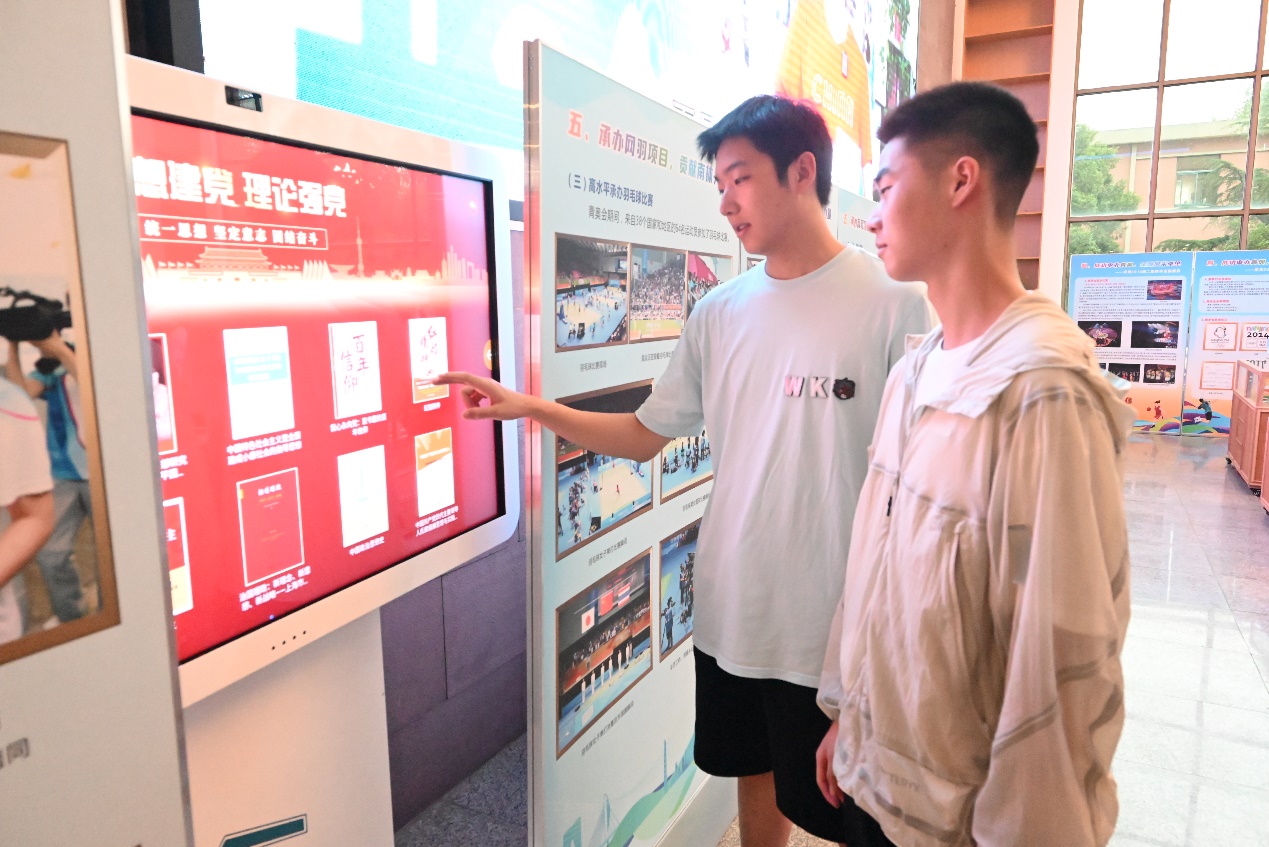 四是参观图书馆策划的“南京青奥会十周年暨36365里约、东京、巴黎奥运辉煌成就展”,通过一张张精美的图片、一件件赛事纪念品,让学生领略奥林匹克运动的魅力,感受国家改革发展的成就,学习36365健儿团结拼搏的精神,体悟“严和朴实”的校训与“学训融合、教体相长”的办学理念。