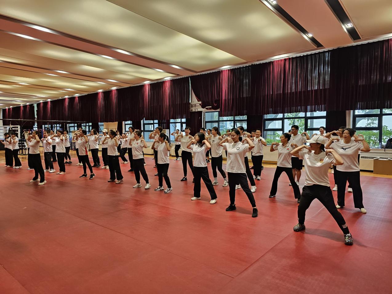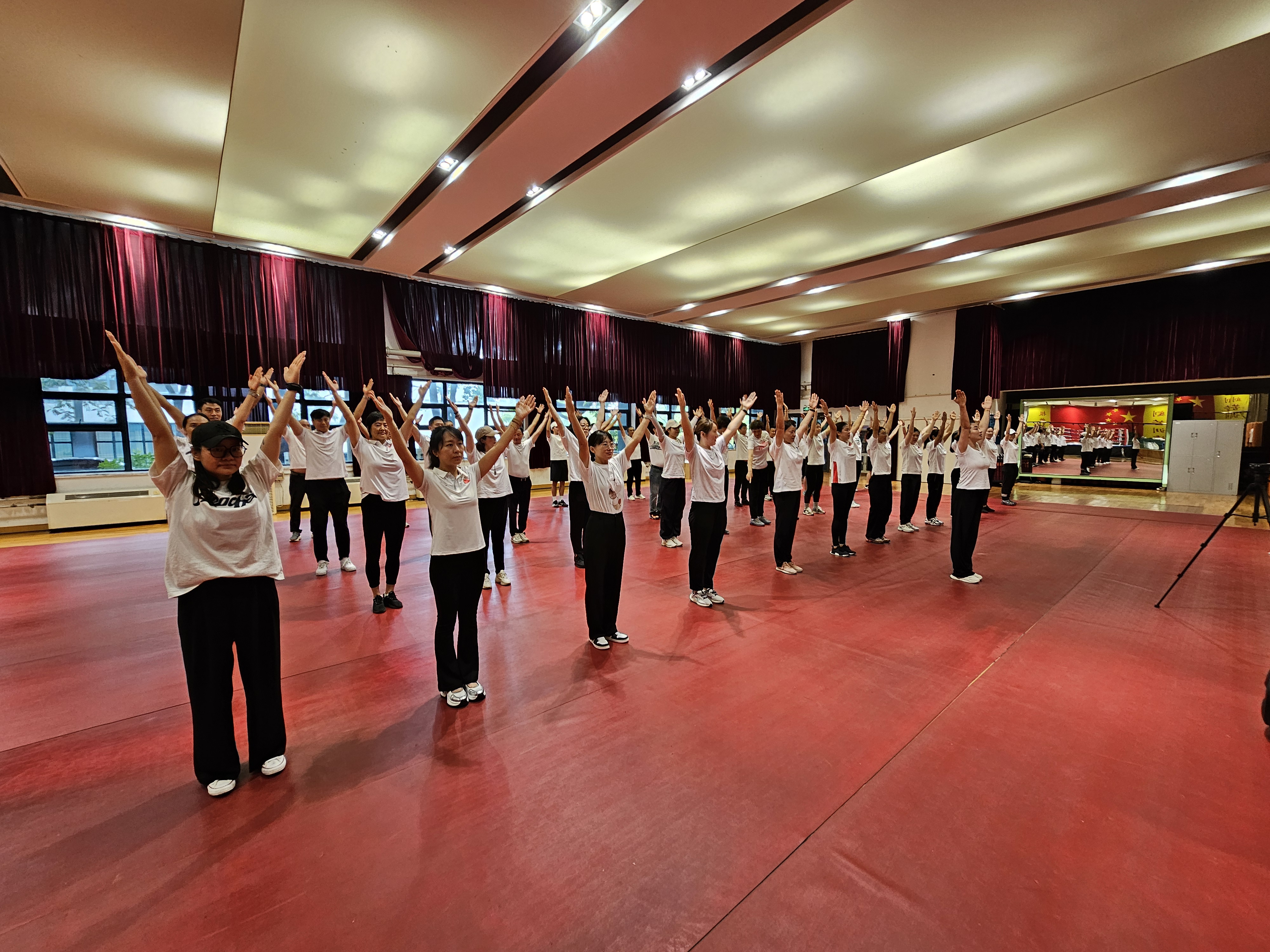 为营造庆祝中秋、国庆节日的浓厚氛围,运动训练学院分工会于9月12日下午在仙林校区举重馆开展以“庆中秋 迎国庆”为主题的教职工健身操培训活动。