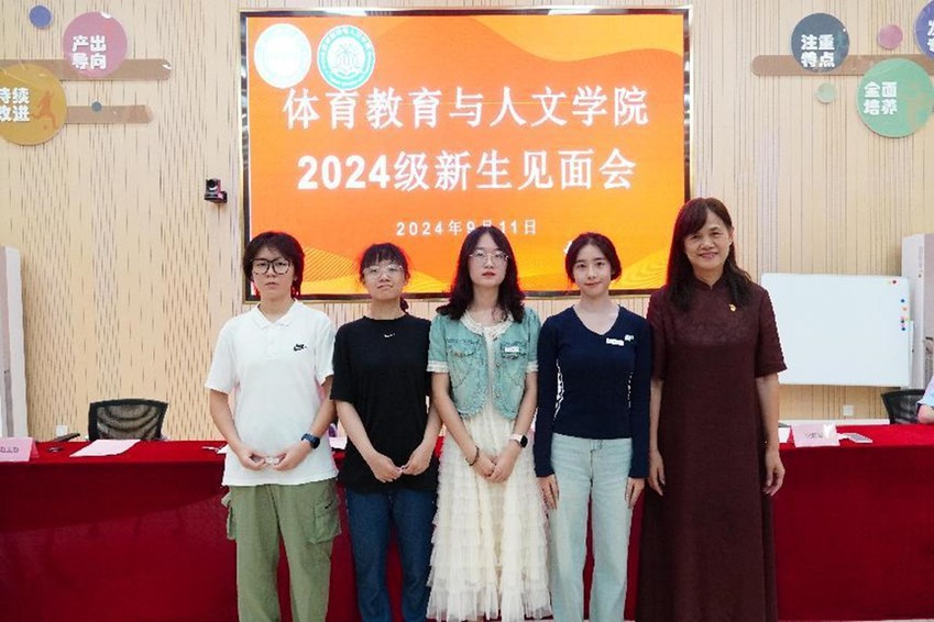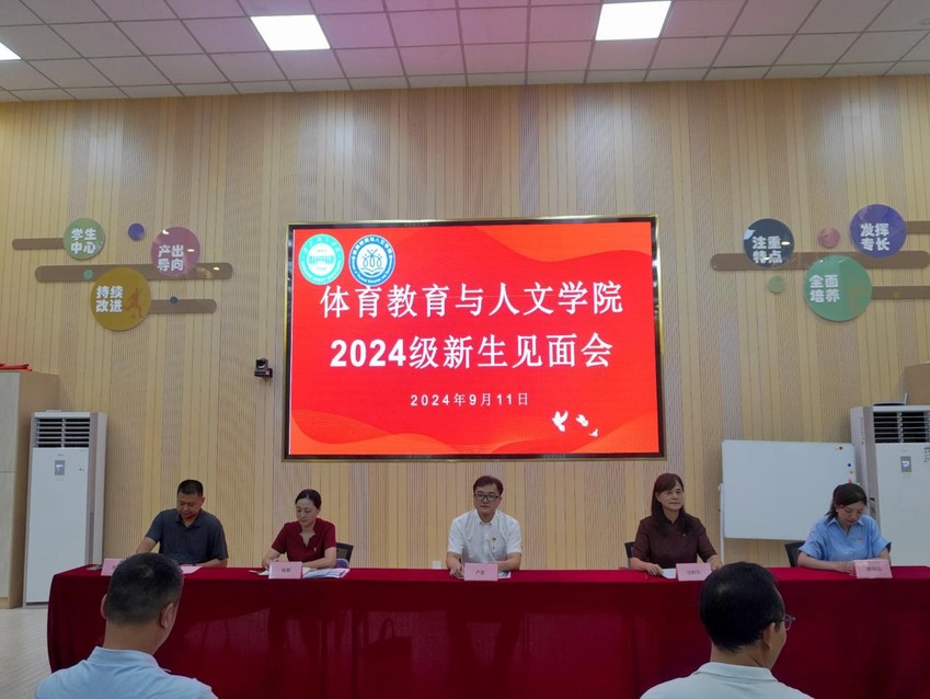 9月11日下午,体育教育与人文学院于东阶举行2024级新生见面会。体育教育与人文学院党总支书记卢奎、院长沈鹤军、副书记喻菊、副院长康晓磊、学院各系部主任以及部分专业教师出席见面会。新生班主任、2024级全体新生参加见面会。会议由学工办主任及新生辅导员赵玉超主持。