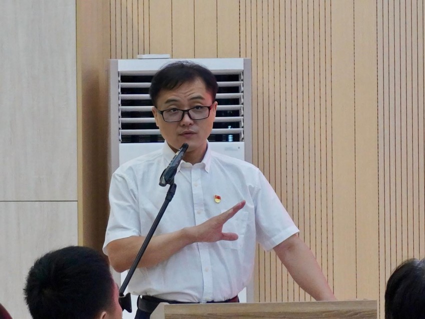 卢奎以“和冠军作伴 与信仰同行”为题致欢迎词,为新生讲授“开学第一课”。首先,他代表体育教育与人文学院热烈欢迎全体新生的到来。他以自身20年的工作经历为例,与同学们交流在实际工作中积累的经验与体会。并就我院基本情况及近年来师生取得的成绩展开介绍。他对2024级新生提出了殷切的期望,鼓励他们在大学校园中认真学习,积极进取,茁壮成长。