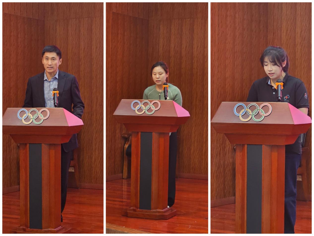 教师代表马宁、老师代表刘育彤、新生代表盛怡然发言