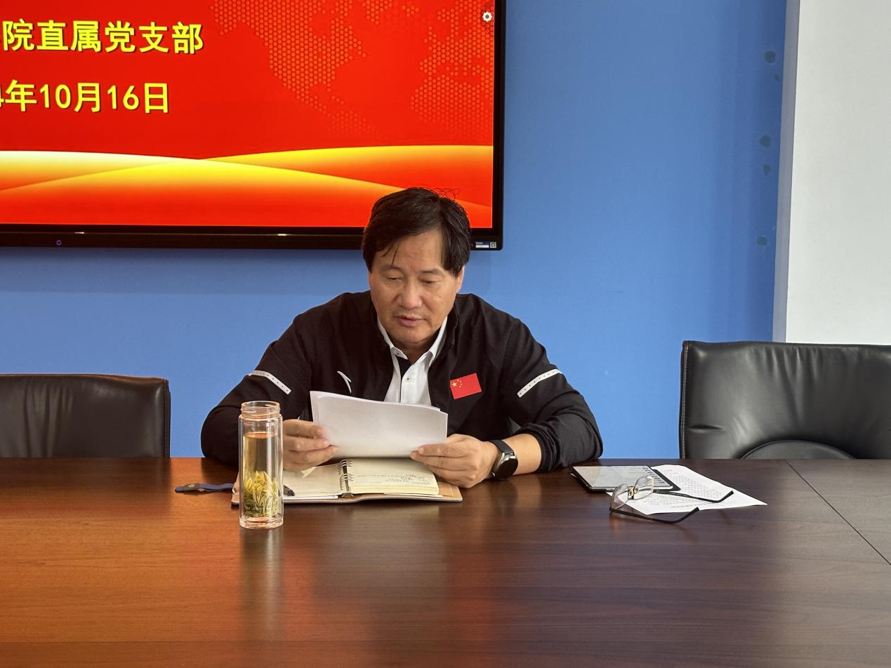 会上,唐存楼传达学习了学校党纪学习教育总结会精神,并代表直属党支部做党纪学习教育总结发言。他从“学纪知纪,提升党纪认识”“以案促学,做到警钟长鸣”“学用结合,提升廉洁自律意识”“求真务实,增进学习实效”四个方面进行了总结。唐存楼指出,加强纪律教育、严肃党的纪律是我们每个党员干部的责任和义务,要通过持之以恒参加党纪学习教育,切实做到心有所畏、言有所戒、行有所止。要求大家要进一步扎实推进党纪学习教育常态化长效化,持之以恒巩固深化党纪学习教育成果,坚持融入日常、抓在经常,坚持扎扎实实干事、清清爽爽履职,不断将学习教育激发出的工作热情转化为工作动力。