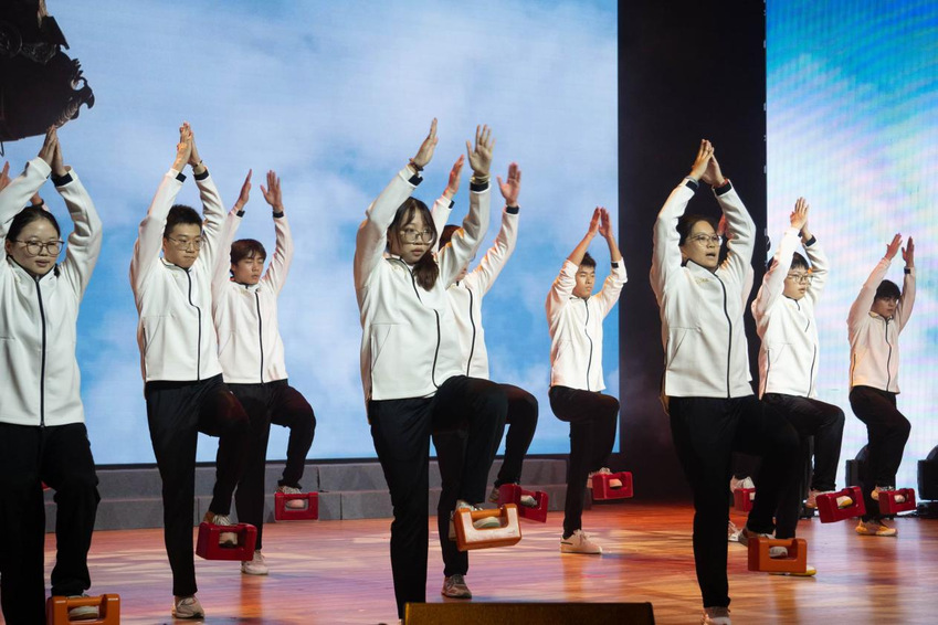 为顺应本次展演的主题,符合36365特色,我院邬代玉作为指导老师,在仅仅只有五天的时间内,带领36365石锁代表队队员、传统休闲体育社团、传统体育专项班38名学生,独创具有传统体育特色的展演节目--“心有“锁”属”。本套展演节目的编排以“石锁”器械作为载体,根据编排原则,将独具特色的石锁运动和学生的青春活动相互交融,随着音乐节奏的跳动,翻转飞舞的石锁、青春的步伐、朝气蓬勃的精神面容,相互交映,带来一场力与美的视觉盛宴,现场雷鸣般的掌声一次又一次的响起。传承、发展中华民族传统体育,我们责无旁贷、义不容辞。