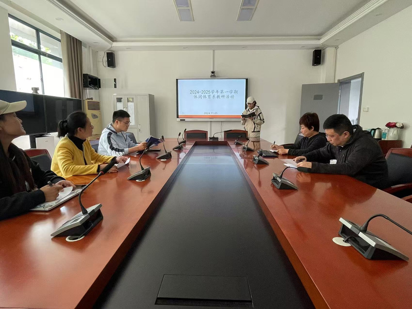 2024年11月5日,体育产业与休闲学院休闲体育系在仙林校区101会议室召开产教融合专业建设推进会暨基层教学组织第十周例会,系主任朱金宁主持会议,系部全体教师参加研讨。