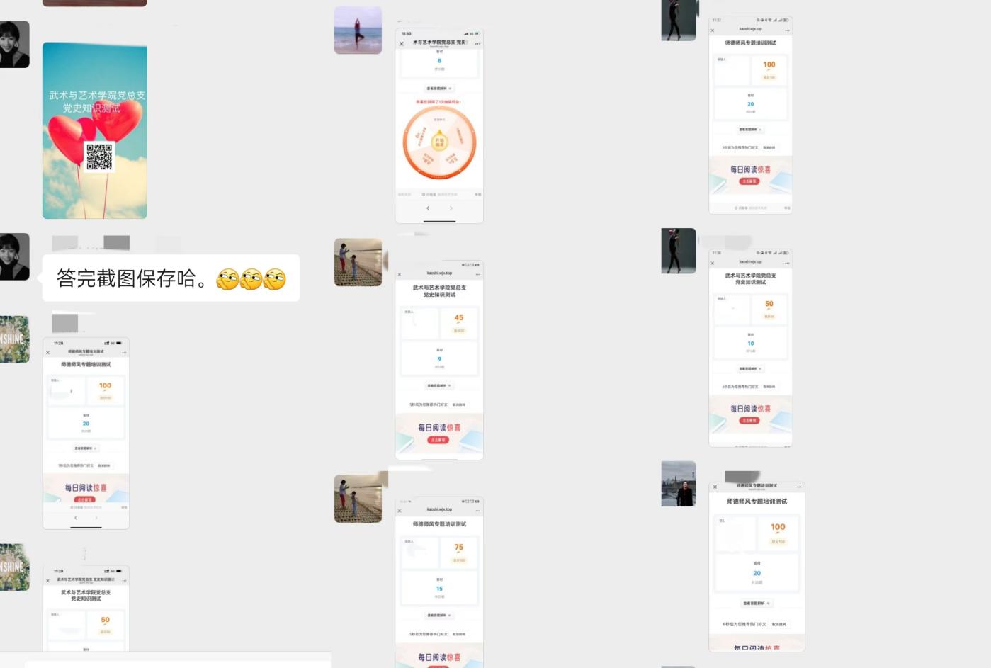 观影结束,组织全体党员和教师进行了党史学习教育和师德师风线上答题活动,内容涵盖党的光辉历程、党的创新理论、重要历史事件以及教师职业道德规范等多个方面。不仅巩固了党史学习教育成果,也进一步提升教师的师德师风修养。通过答题,教师们对党的历史有了更加全面、深入地了解,对教师的职业使命和道德责任有了更加清晰的认识。