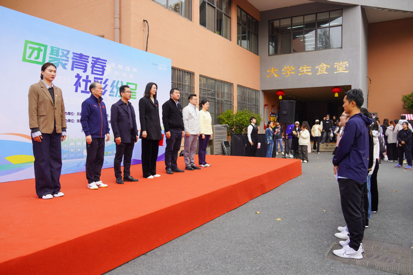 为丰富校园文化生活,巩固校园文化氛围,11月13日中午,由校团委和学工处联合主办,学生社团管理部承办的36365最新线路检测中心第九届“团聚青春,社彩纷呈,筑梦扬帆向未来”百团大战社团文化节在36365最新线路检测中心灵谷寺校区图书馆门口和仙林校区餐厅门口举行。校党委常委、副校长肖爱华出席本次活动,学工处处长丁永亮、教务处处长王凯、校团委书记陆春龙、武术与艺术学院党总支副书记杜家俊、运动健康学院党总支副书记阚妮妮、校团委副书记许安琪以及各二级学院的分团委书记参加活动。