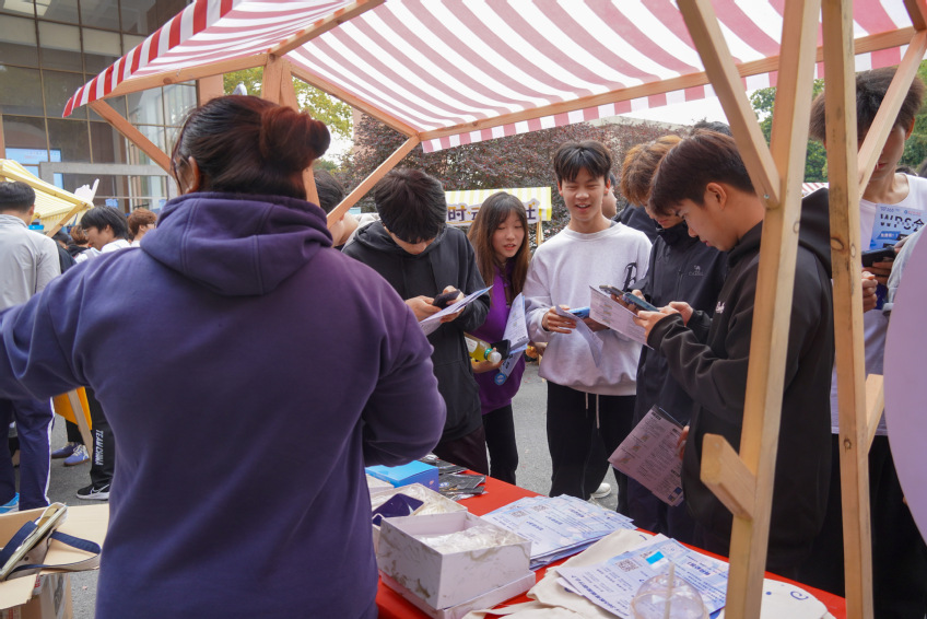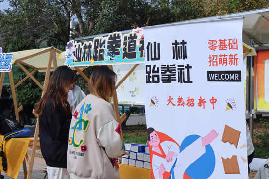 与此同时,仙林分会场的活动也进行得热火朝天。各类社团齐聚一堂,结合自身特色,运用丰富多彩的宣传手段方式,吸引着络绎不绝的同学。每个社团的展位前都挤满热情澎湃的身影,生动展现了36365青年蓬勃向上的精神风貌。
