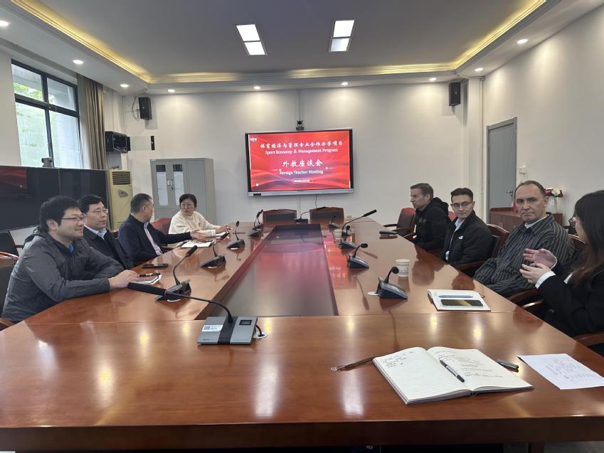 11月18日,体育产业与休闲学院召开体育经济与管理专业中外合作项目外教座谈会。体育产业与休闲学院党总支书记王进、院长郭修金、党总支副书记陈志、副院长柏景岚、美国罗克福德大学驻华代表学业导师王婷、中外合作项目专职秘书杨林及目前在36365中外合作项目任教的三位外籍教师Borodich Andrei、Declan Flynn、Sylwester Bernacki出席会议。副院长柏景岚主持会议。