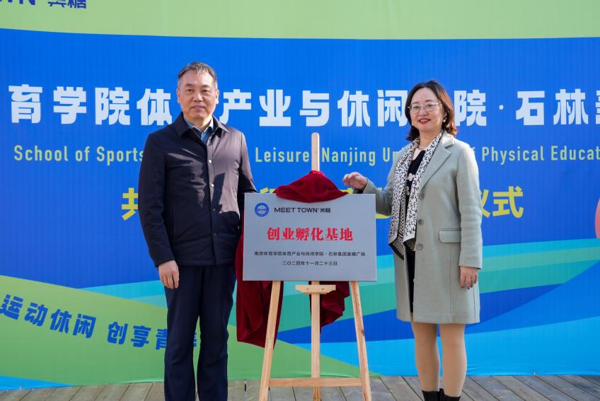秉持创新驱动发展理念,共育实干创新型人才。11月23日下午,体育产业与休闲学院与石林集团美糖广场共建创新创业实践孵化基地签约揭牌仪式,在美糖广场隆重举行。体育产业与休闲学院党总支书记王进、学院院长郭修金、学院党总支副书记陈志、学院副院长柏景岚及学院各系部主任,石林集团总裁姜玲、执行董事长刘颖等相关人员及体育产业与休闲学院师生30余人参与本次活动,