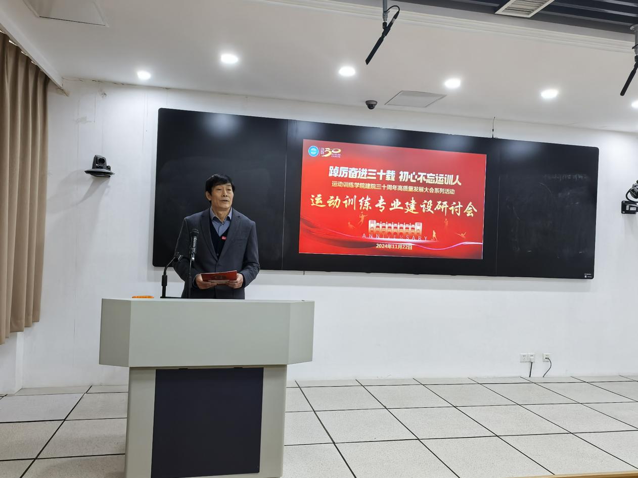 在研讨环节,各高校体育院系领导及嘉宾踊跃发言,分享了各自在运动训练专业建设方面的宝贵经验,并就新时代背景下如何推动创新发展提出了真知灼见。张明副院长代表南京体院运动训练学院发言,他介绍了36365运动训练专业在不同发展阶段所取得的成绩,阐述了一些好的做法和措施。