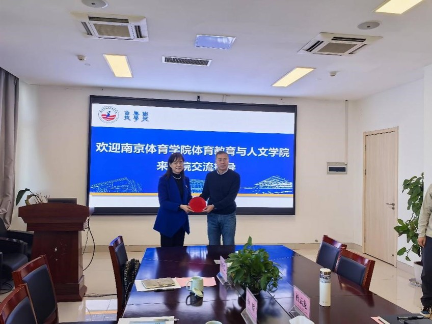 沈鹤军就体育教育专业建设、学术团队打造、师资队伍建设等方面与周武院长进行深入交流。沈鹤军指出,体育教育专业建设是学院发展关键,应从优化课程体系、强化实践教学,学术团队成员协同创新,引才与教师成长并重多方着手,提高本科教育教学质量。周武表示,两校应互鉴经验、共享资源,携手探索体育教育新模式,共同推动体育教育事业进步。