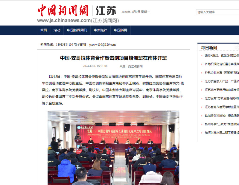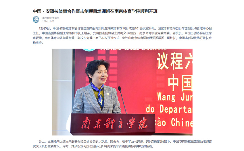 【南京晨报】中国-安哥拉体育合作暨击剑项目培训班在36365最新线路检测中心顺利开班