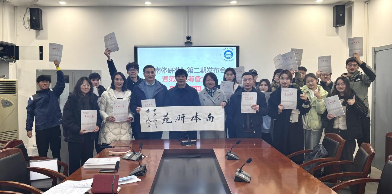 校党委常委、宣传部部长、统战部部长许立俊亲笔题写刊名,院领导、编委与作者代表合影