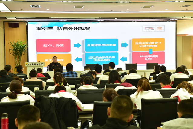 讲座中,支珊珊以《以案为鉴,预防和避免兴奋剂违规》为题,重点聚焦食品、药品、营养品的“三品”防控问题,结合五个真实案例,深入浅出地向大家讲解了兴奋剂的防控措施,并引用多个典型案例,恰如其分地阐明了兴奋剂违规的严重后果及其潜在风险,警醒运动员们要充分认识到兴奋剂误服误用的风险和危害,自觉履行日常管理规定,筑牢“纯洁体育”底线,确保兴奋剂问题“零出现”。