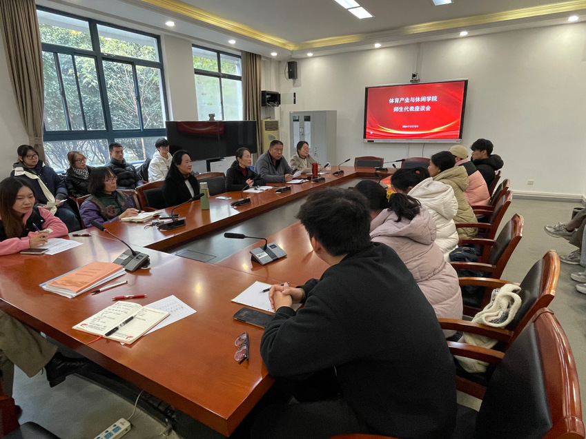 为深入了解学生学习生活和思想动态状况,切实有效推进学院日常教学和助力学生成长成才,12月12日中午,体育产业与休闲学院在仙林校区教学楼105会议室召开师生代表座谈会,学院本科教学督导组成员、各系教师代表、辅导员代表和各班学生代表参加座谈会。