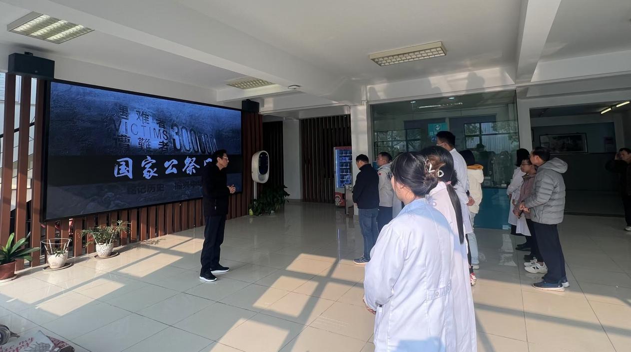 上午十点整防空警报响起,医院大厅内,全体人员肃立默哀,向南京大屠杀中惨遭侵华日军屠杀的 30 万同胞致以沉痛的哀悼。默哀过程中,现场一片寂静,每个人都沉浸在对历史的追忆和对遇难者的深切缅怀之中,心中涌动着无尽的悲痛与愤慨。