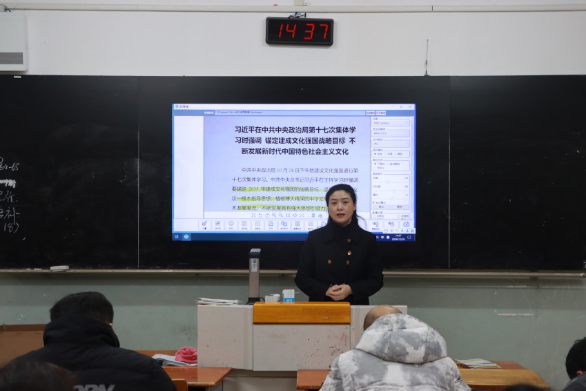 王蓉带领全体教师深入学习了《习近平对新时代马克思主义理论研究和建设工程作出重要指示》以及《习近平在中共中央政治局第十七次集体学习时强调 锚定建成文化强国战略目标 不断发展新时代中国特色社会主义文化》等文件精神。通过学习,教职工们进一步加深了对新时代中国特色社会主义文化发展道路的认识,明确了在教育实践中如何更有效地传承和弘扬中华优秀传统文化。在学习过程中,王蓉特别强调,作为学生思想道德建设的引领者,教师必须以身作则,树立正确的价值观,并积极营造积极向上的校园文化氛围。她还着重指出了师德师风建设的重要性,要求教师们在日常教学和生活中恪守师德规范,以高尚的师德影响和教育学生。