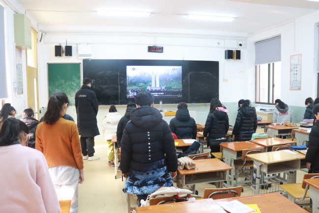 12月13日上午,附属学校组织各班收看“南京大屠杀死难者国家公祭日:勿忘国殇吾辈自强”央视新闻直播。10点01分,随着全城防空警报鸣起,全体师生起立默哀,缅怀南京大屠杀和所有惨遭日本侵略者杀戮的死难同胞,缅怀为中国人民抗日战争胜利献出生命的革命先烈和民族英雄。