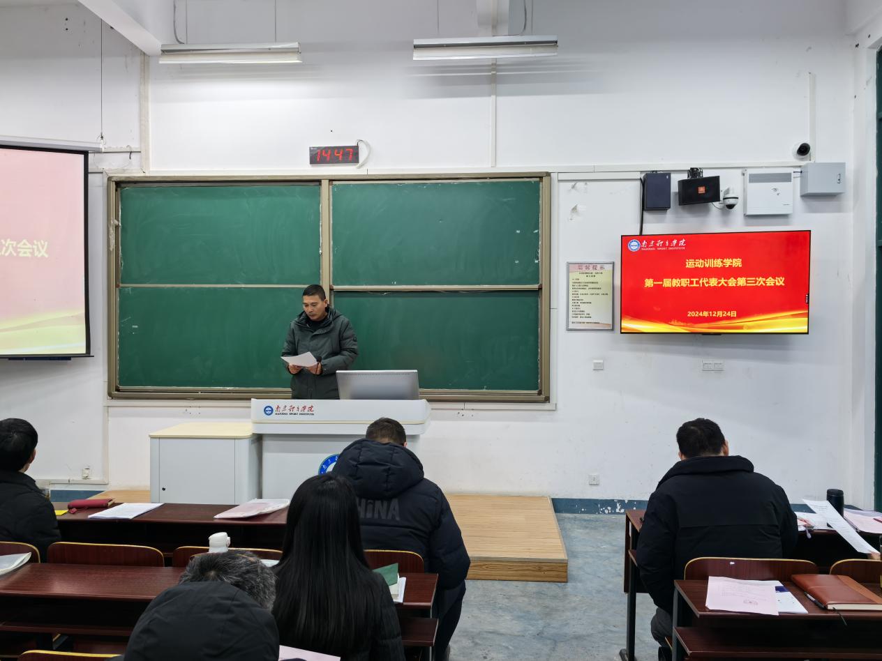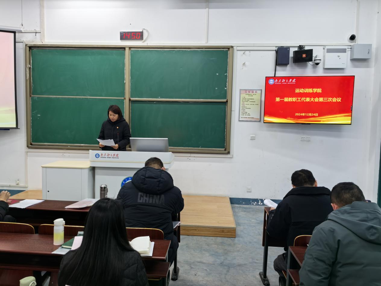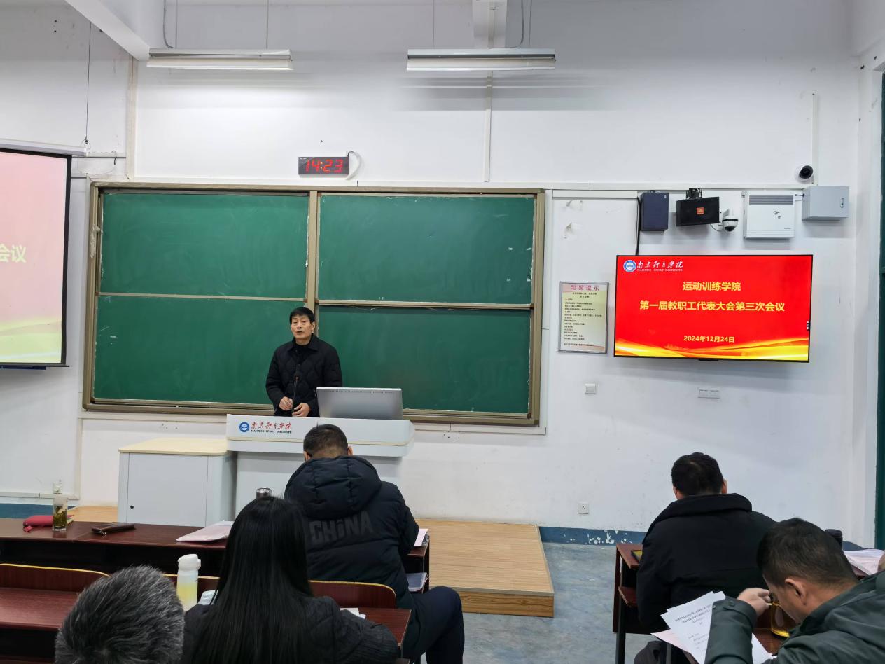 12月24日下午,运动训练学院第一届教职工代表大会第三次会议在仙林校区B-201教室召开。学院教职工代表大会的代表28人和列席代表11人参加了大会。