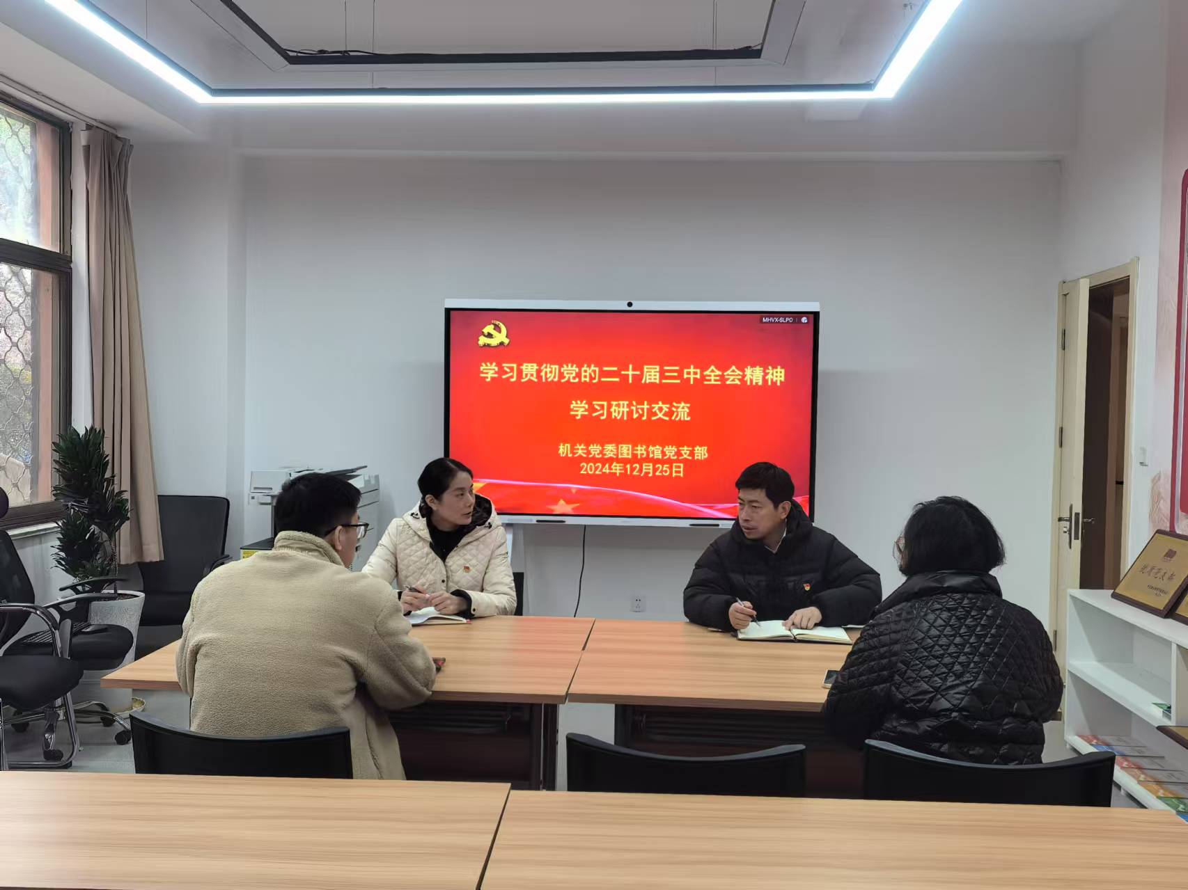 为深入学习习近平总书记在党的二十届三中全会上的重要讲话精神,深刻领会和把握进一步全面深化改革的重要意义,切实提高党员干部理论水平与工作能力,根据机关党委《关于开展党支部书记、科级及以下干部、党员学习贯彻党的二十届三中全会精神培训的通知》要求,图书馆党支部于12月11日—25日期间组织了4场二十届三中全会精神专题学习及交流研讨。参与培训的党员干部还认真撰写了深刻的学习体会。