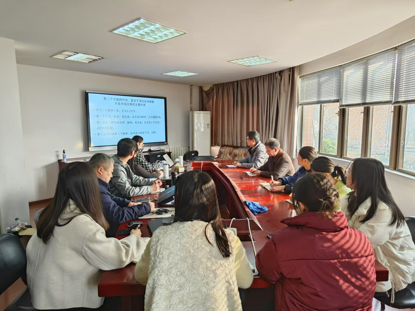 为持续深入学习习近平总书记在党的二十届三中全会上的重要讲话精神,深刻领会和把握全面深化改革对于推进中国式现代化的根本动力作用,根据机关党委《关于开展党支部书记、科级及以下干部、党员学习贯彻党的二十届三中全会精神培训的通知》的要求,结合工作实际,计划财务处党支部于12月25日—26日期间组织了两场二十届三中全会精神专题集中培训及交流研讨,会议由党支部书记丁锴主持。