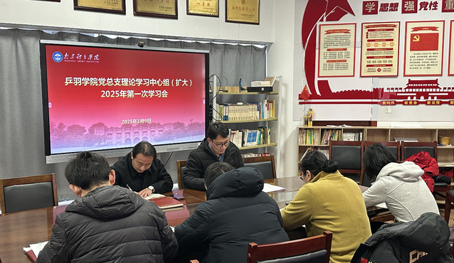 1月9日下午,乒羽学院党总支理论学习中心组(扩大)开展了2025年第一次集中学习,学院党总支副书记吴晓明主持学习,全体理论学习中心组成员及其他管理干部参加了学习和交流。