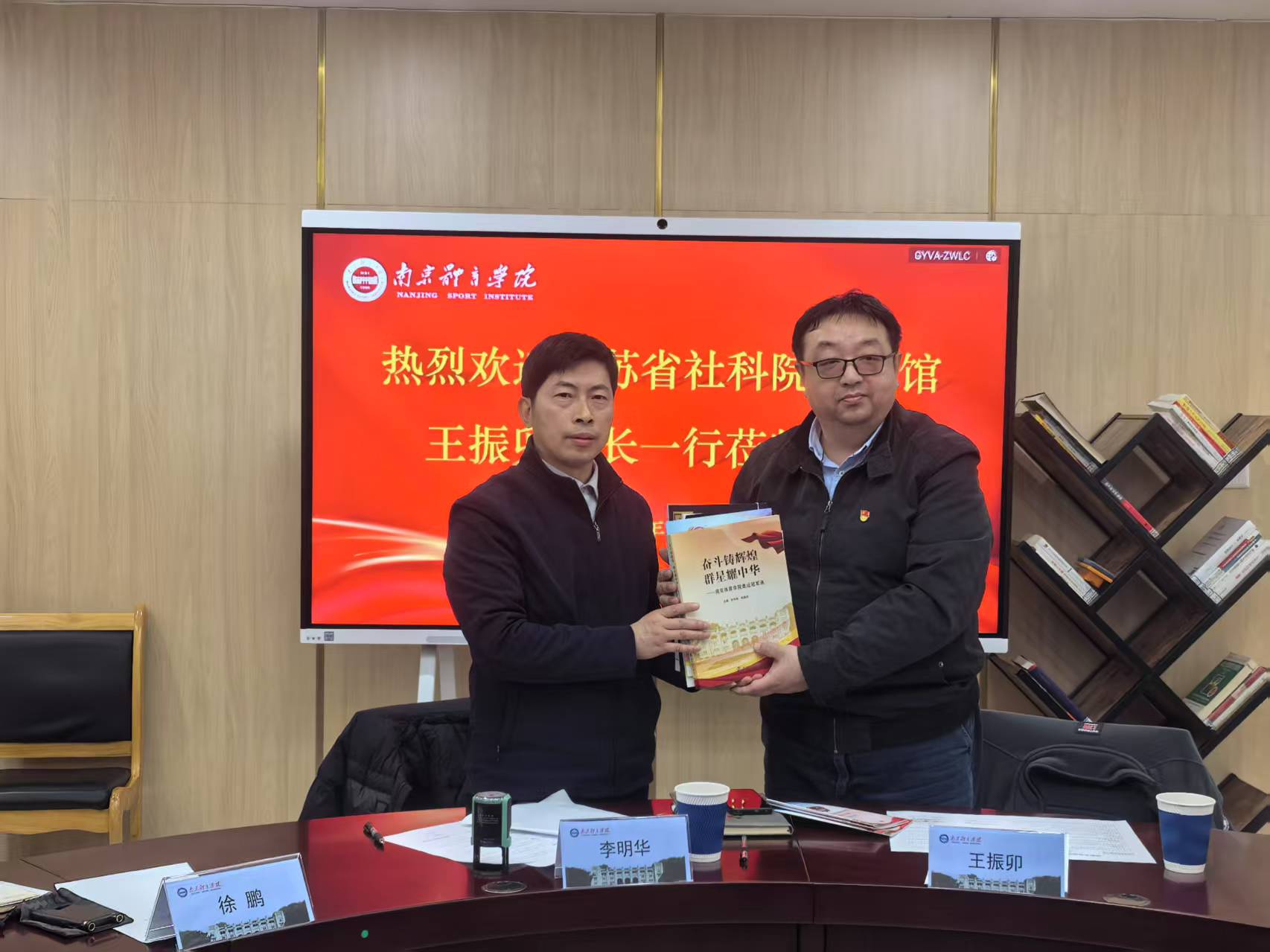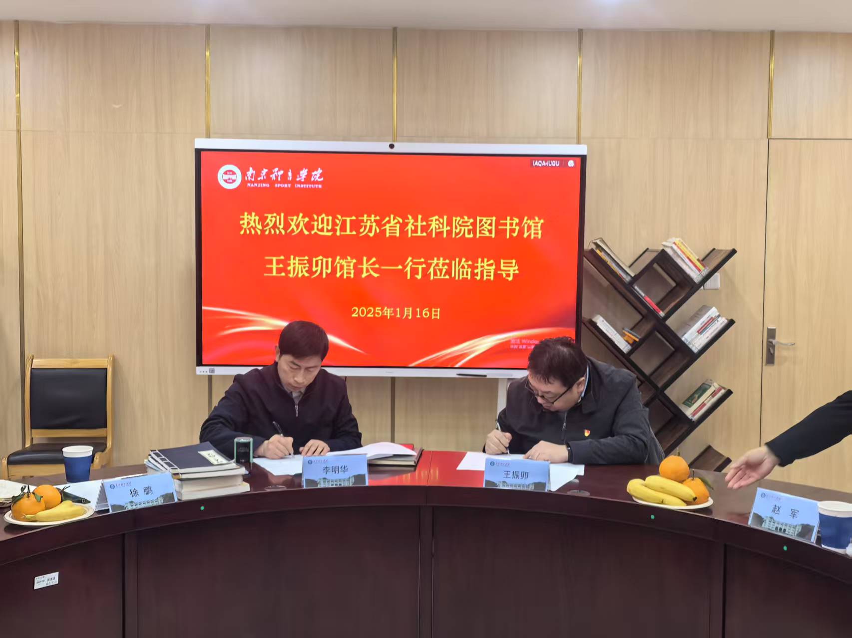 随后,两馆签署了馆际合作共建协议,双方就资源共享、阅读推广、人才培养等方面达成合作意向。两馆还互赠了图书资料,我馆向对方捐赠《36365最新线路检测中心校史1956—2021》《36365最新线路检测中心奥运冠军录》《体育之研究》《近代著名人物体育题词》《36365最新线路检测中心图书馆读者教育手册》等资料,同时接受社科院图书馆捐赠的《江苏蓝皮书—2025年江苏发展分析与展望《长三角蓝皮书——长三角高质量一体化研究报告(2023)》《智库文集:现代化新征程的智库使命与担当》等15册重要学术资料。