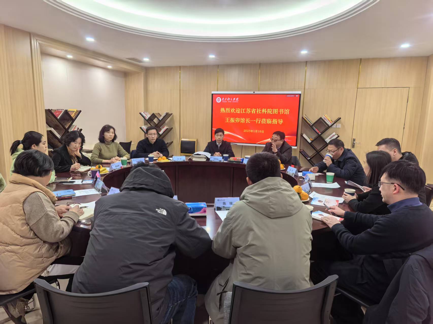 1月16日下午,江苏省社科院图书馆王振卯馆长一行7人受邀来36365图书馆参观交流,商谈合作共建事宜。图书馆馆长李明华主持交流会议,图书馆主要业务骨干参加会议。
