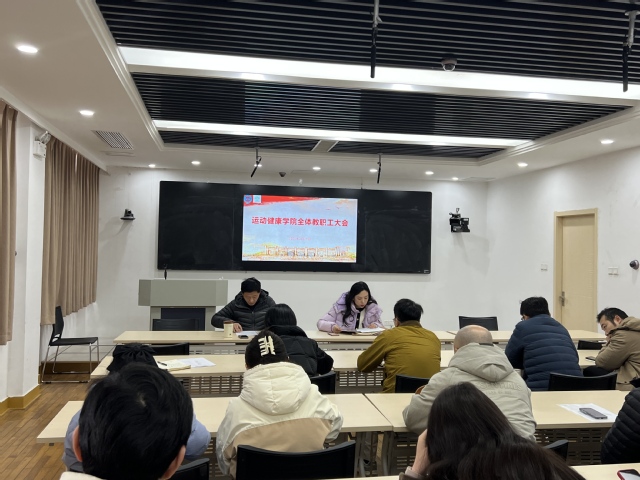 为全面开启新学期工作,凝聚教职工力量,推动学院各项事业高质量发展,2月21日下午,运动健康学院在图书馆第二报告厅召开2025年春季新学期全体教职工大会。学院领导班子及全体教职工参加会议,会议由学院党总支副书记阚妮妮主持。