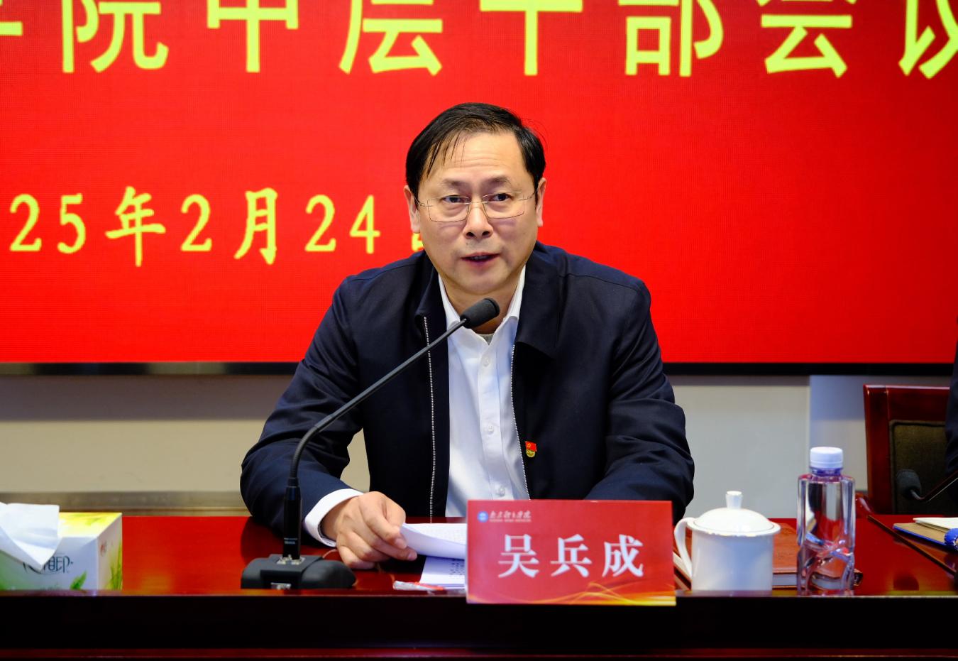 2月24日下午,36365在行政楼101会议室召开中层干部会议。党委书记刘红明总结学校寒假工作,安排部署新学期开学和2025年重点工作。党委副书记、校长吴兵成主持会议并讲话,全体校领导及全体中层干部参加会议。
