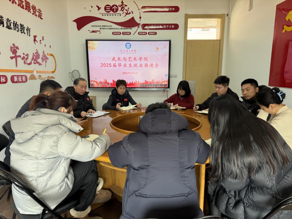 为全面推进2025届毕业生就业工作,切实做好就业指导和服务,促进学院毕业生高质量充分就业,3月6日中午,武术与艺术学院在教学实验楼二号楼308会议室召开2025届毕业生就业工作推进会,党总支书记叶瑛、副书记杜家俊、各系正副主任、全体辅导员和毕业班班主任参加了此次会议。会议由杜家俊主持。